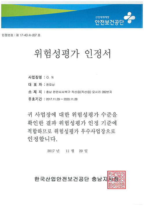 아산2공장 충청남도 아산시 둔포면 봉신로 258-51 T. 070-8676-6766 F. 070-8233-6766